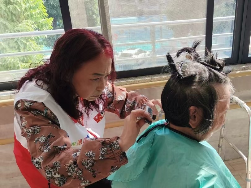 在广州江南颐养苑,志愿者们耐心地为老人们修剪头发,她们并非专业人员,但手法娴熟,一边理发一边与老人们亲切交谈,询问他们的身体状况和生活情况,让老人们感受到了温暖和陪伴。一张板凳、一把剪刀,简单的工具,熟练的手法,伴着“咔嚓”的剪刀声,一缕缕银发落地,坐在椅子上的老人,看着镜子中的自己,乐呵呵地笑了。记者了解到,为了能为老人们提供更专业的理发服务,不少志愿者还专门去找专业理发师傅学习了理发技艺,以便能为老人们理出理想的发型。“志愿者们为我理了一个清爽的发型,可以开开心心过春节了。”江南颐养苑的张伯说。