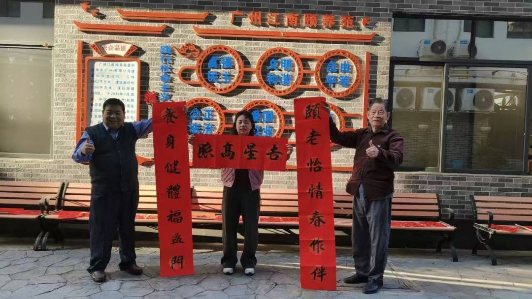 另一边,“新春送福 情暖社区”活动也如火如荼地进行着。广州德艺缘诗书画会的书法家们则挥毫泼墨,为老人们书写了一副幅寓意吉祥的春联和“福”字。他们的书法作品苍劲有力,笔走龙蛇,每一笔每一划都蕴含着对老人们的美好祝愿。