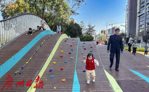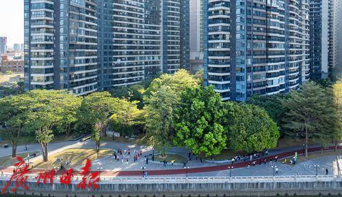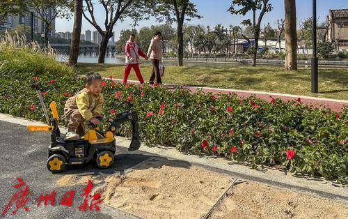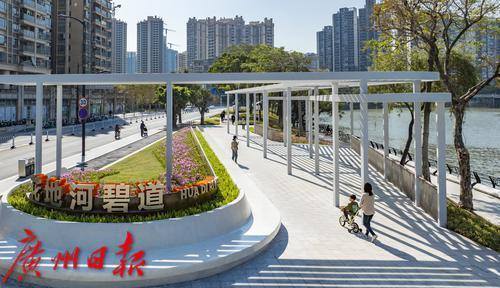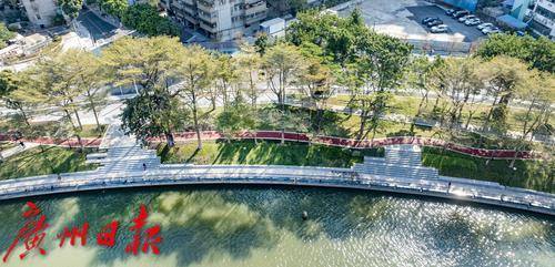 花地河示范段将闲置空地改造为活动广场,将低效绿地提升为儿童乐园,打造与城市互联互通的休闲水岸。