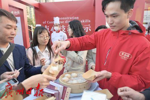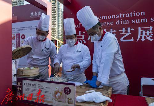 大厨现场展示粤式点心制作技艺。