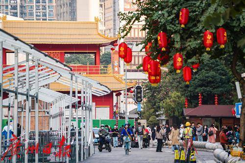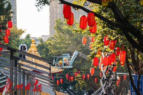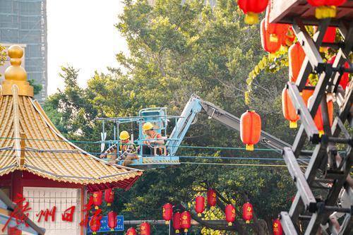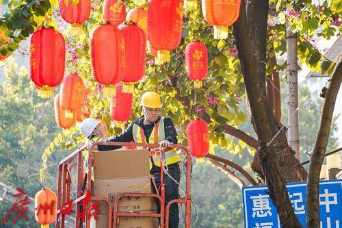 而挂灯笼的工人也在树上为城市挂上了最喜庆的年味,一盏盏红彤彤的灯笼随风摇曳,过年的气息瞬间扑面而来。为了营造出花市热闹非凡的过年氛围,工人们不辞辛劳,在各自的岗位上忙碌着,一场欢乐、祥和的新春盛宴也正等待开启。