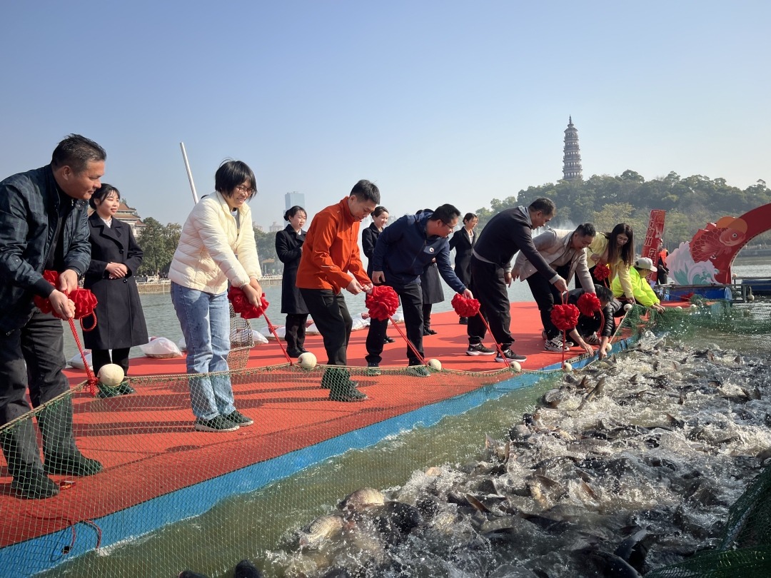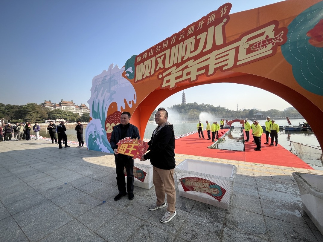 今日,佛山“含鱼量”最高的地方在顺德。1月18日,佛山市顺德区举行2025年“顺风顺水 年年有鱼”顺峰山公园青云湖开渔节。