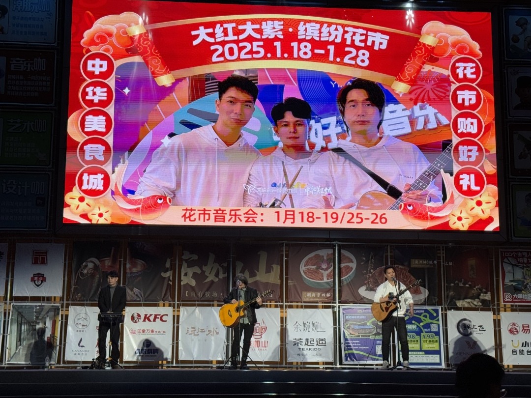 除了各具特色的摊位,花市期间还精心策划了一系列精彩纷呈的民俗活动。1月18日,乐队“电音三太子”巡游中华美食城四街,潮流动感电音与传统花市碰撞,瞬间点燃气氛,用独特表演为大家带来充满力量、创新与欢乐的祝福。同天晚上,龙狮共舞表演,现场锣鼓喧天,热闹非凡,提前感受到新年的喜庆氛围。