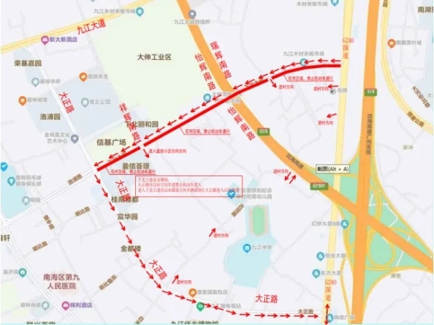 ●下北大道:禁止2吨(含)以上大型货车进入(运送鲜花车辆除外);取消路内停车位使用并禁止各类车辆停放;G240国道往大正路方向车道单向行驶;由大正路路口往G240国道路口方向车道按实际情况分阶段封闭,禁止汽车通行;下北大道大正路口、G240国道路口、古窖村口、祥辉南路路口、下北东岸村路口等路口设置相关标志或指引牌,途经车辆请按照现场人员和指引标志行驶。
