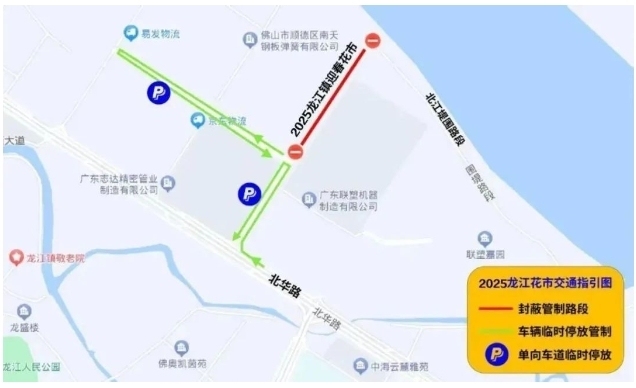 ●花市期间,文华路(同济路至绿景三路段)、南沙街(岭南大道至文华北路)、岭南大道(同济路至绿景二路段)、金华路(岭南大道北至文华北路)周边路段严禁车辆停放。