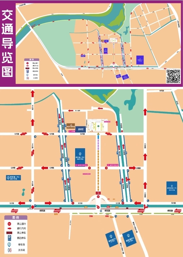 ●可双边停车:花卉大道、万紫路、千红路;电动自行车临时停放区:玉兰路指定区域。