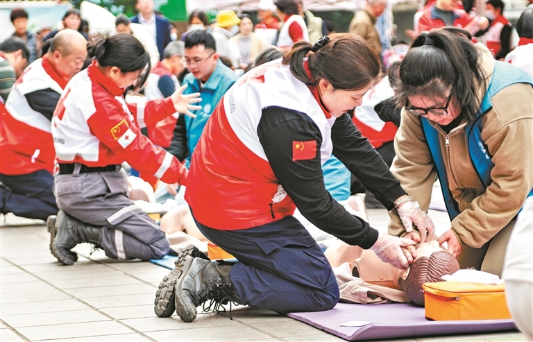2024年,“应急救护培训提质扩面,编织‘救在身边’安全网”成为广州市十件民生实事之一。记者了解到,截至2024年底,广州市红十字会多方联动,深化应急救护培训进社区、进农村、进学校、进机关、进企业、进家庭,共培训红十字救护员7.06万人,开展应急救护公益讲座1233场、惠及约17万人。全年新增的红十字救护员占全省28.7%,全市累计已有68.98万名红十字救护员。
