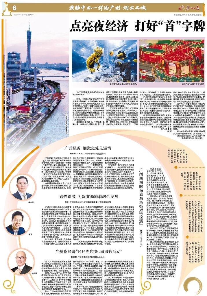 近年来,广州围绕国际范与烟火气的创新“求变”仍在持续。衔接国际消费中心城市“5+2+4”商圈体系需求,同时考虑区位分布、现有产业特色、交通状况等因素,广州推出了首批培育建设的3个中西特色美食集聚区。认定全市首批15个都会级羊城夜市先行区,推行包容审慎监管政策,提供高效集中的服务保障;推出城市消费IP“羊城消费新八景”,形成联动政府和市场、融通虚拟和现实、贯穿线上和线下的商旅文体健融合消费矩阵。