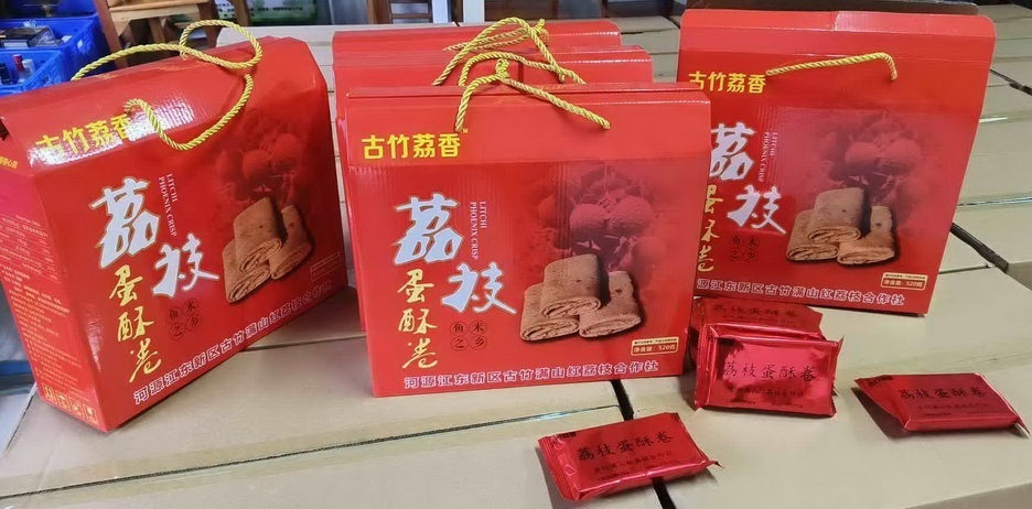 记者在江东新区2025年新春年货节现场了解到,由江东新区古竹镇满山红荔枝种植专业合作社生产的荔枝蛋酥卷、荔枝酒、荔枝蝉茶、荔枝干等系列产品相当畅销,市场上呈现出供不应求的喜人景象。“我们合作社生产的荔枝系列产品,在这里相当抢手,其中新上市的荔枝蛋酥卷已被市民抢购一空,”古竹镇满山红荔枝种植专业合作社负责人叶浓青兴奋地告诉记者,今后他将加大生产力度,将古竹镇满山红荔枝品牌做强做大。