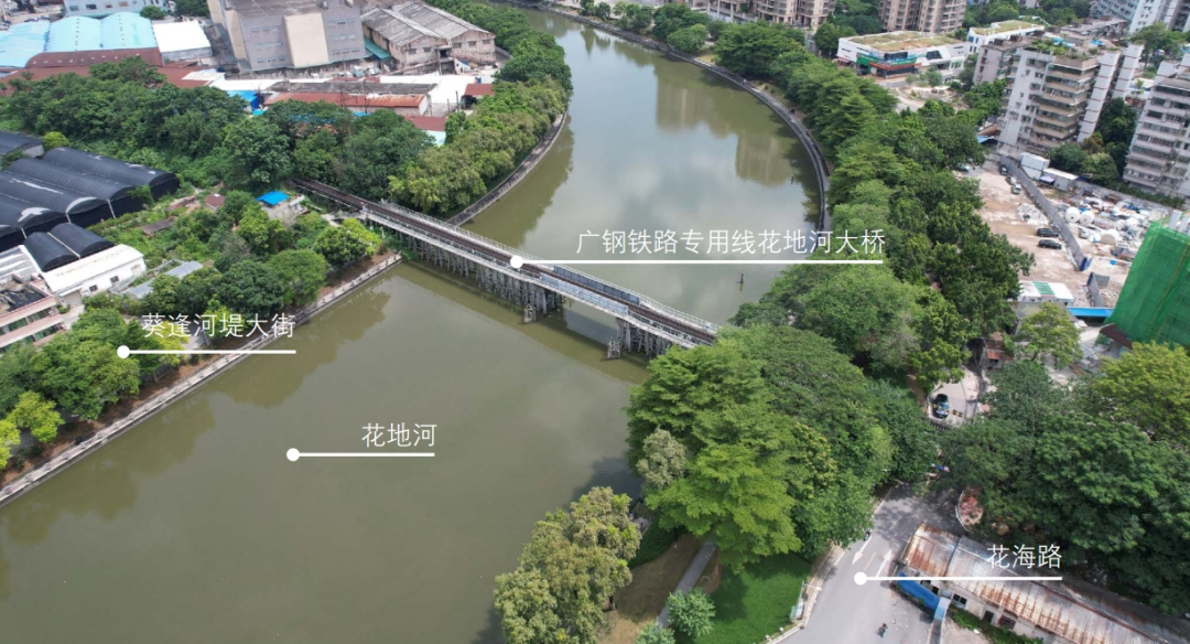 以广钢铁路专用线花地河大桥为例,该桥始建于 1958 年,起初为木便桥形式,1964 年进行改建,1985 年进行原桥大修加固。花地河大桥及线路的历次改造所采取的加固工程技术设计当时属国内首创,见证了铁路工程技术的发展,具有突出技术和美学特点。2013年,随着广钢的停产 搬 迁, 花地河大桥结束了铁路运输使命,改用作人行便桥。