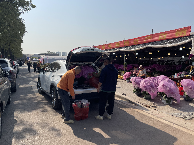 不少市民自驾前来采购年花