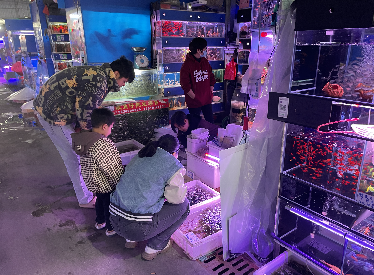 市民一家大小挑选金鱼