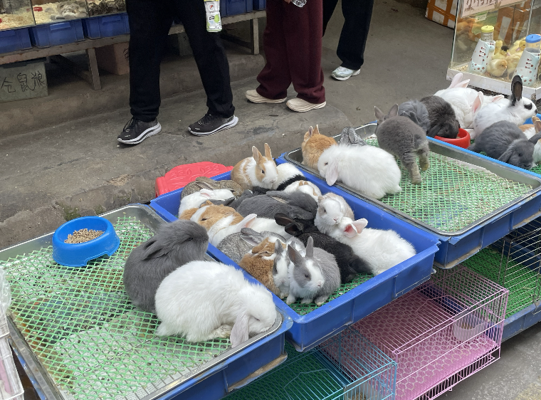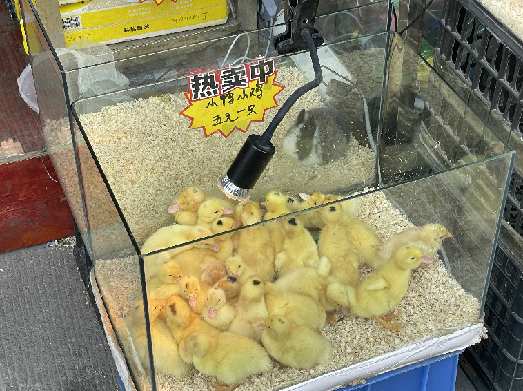 此外,市场内还有不少有趣的萌宠出售,像小鸭、小鸡、飞鼠、兔子、花枝鼠、荷兰猪、迷你小河马等,还有不少爬宠类,不少家长带着小朋友前来观赏选购。
