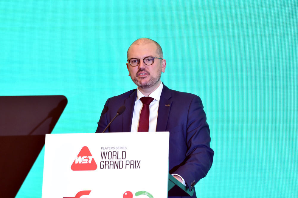 1月21日,世界斯诺克巡回赛首席执行官西蒙·布朗内尔在新闻发布会上致辞。新华社发(卢炳辉摄)