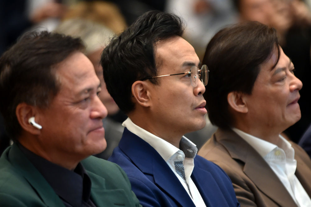 1月21日,中国香港斯诺克运动员傅家俊(中)出席新闻发布会。新华社发(卢炳辉摄)