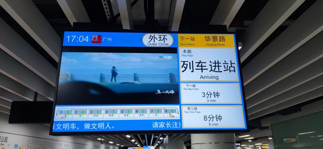 站台、列车电视乘车界面显示更清晰。相比其他线路,十一号线最大的区别就是引入了“内环”“外环”“半环站”的概念。自开通以来,广州地铁密切关注市民搭乘环线出行的反馈,结合市民的需求和建议,在前期专门设计环线乘车导向指引系统的基础上,对线上所有站台、列车电视的显示版式做了进一步优化。