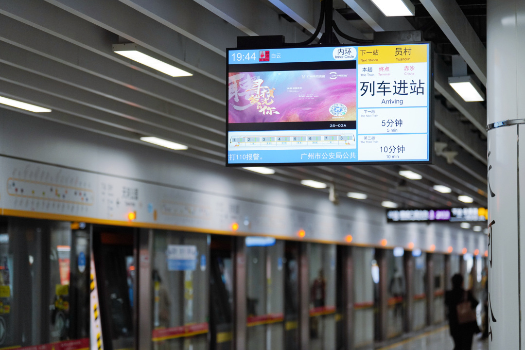 其中,列车电视的显示取消了日期以及地铁Logo等标识,使到站信息栏的“内/外环”、本站/下一站“站名”信息的显示字号得以放大,并增加环线线路色框,乘车方向、具体站点等关键信息更加直观、醒目,而时间显示调整到屏幕左上角,整体界面布局更简单明了;站台电视则在到站信息栏、“内/外环”信息增加了同款色框和放大了“内/外环”信息显示字号,并在“内/外环”信息处增加了环线方向标识,与站台导向指引系统保持一致,帮助乘客快速识别信息、高效乘车。