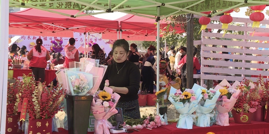 均禾新春墟日已举办至第八届,今年首次融入桃花花艺体验、祈愿桃花树、企业共建助销桃花、桃花主题微型花市四个部分,打造石马桃花节。