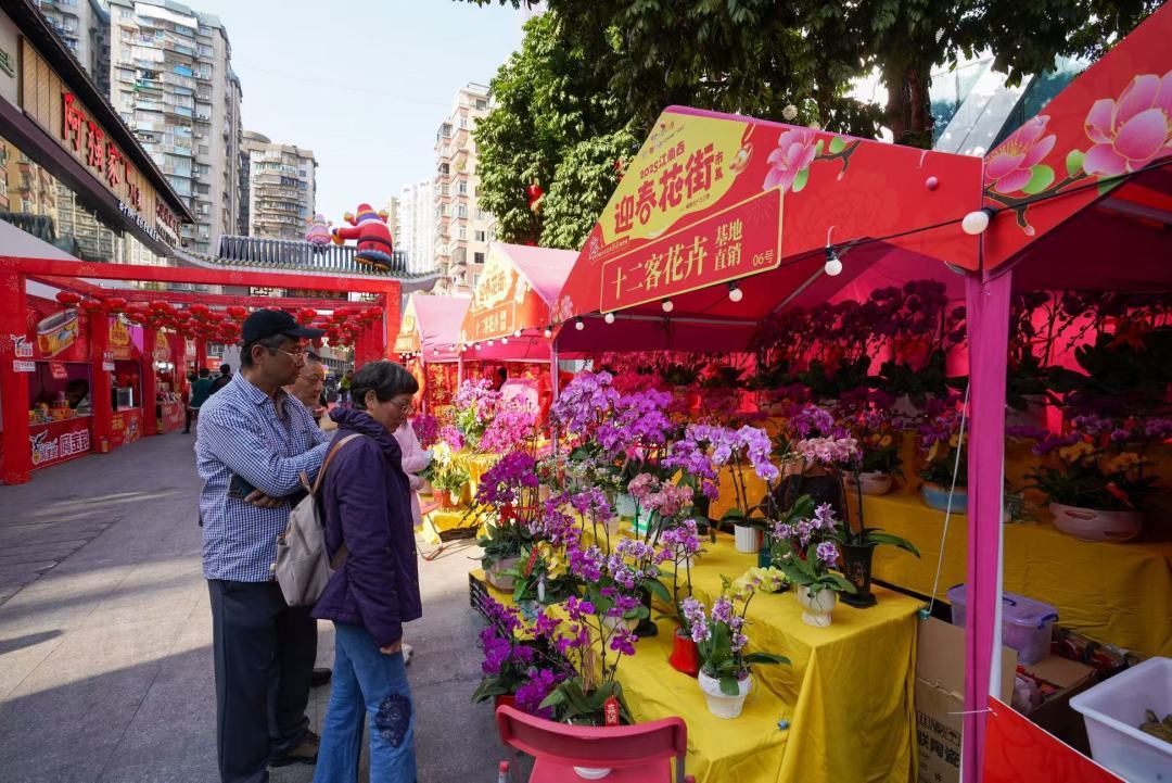 这个花市最大的特色是其为村民自发组织,由美食城免费提供场地和演出服务,实现了摊位“零租金”。这几天,这里已经成为周边市民欢乐团聚、共享年味的地方。“我们希望搭建平台,让大家买到平靓正的年货,感受新年的喜庆和温暖。”中华美食城工作人员说。