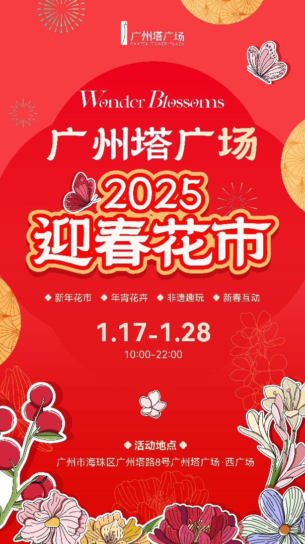 1月17日-1月28日,广州塔下迎来首届迎春花市,以花为媒将广府传统文化与潮流艺术IP相结合,60+市集摊位融合琳琅满目的年花、传统文化互动节目等多种元素,让市民游客沉浸式感受广州花城的浓厚年味,呈现广州塔广场世界级地标商业的多样风貌。现场设有糖画、吹糖人、年画拓印、鱼灯、飘色等传统文化互动展演。