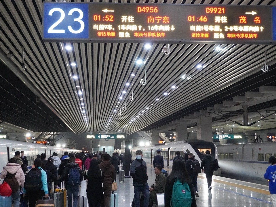 1月21日0时13分,由广州南站开往茂名站的C9925次列车正点开出,这是广州南站2025年春运期间的首趟夜间高铁,标志着“通宵”模式正式开启。