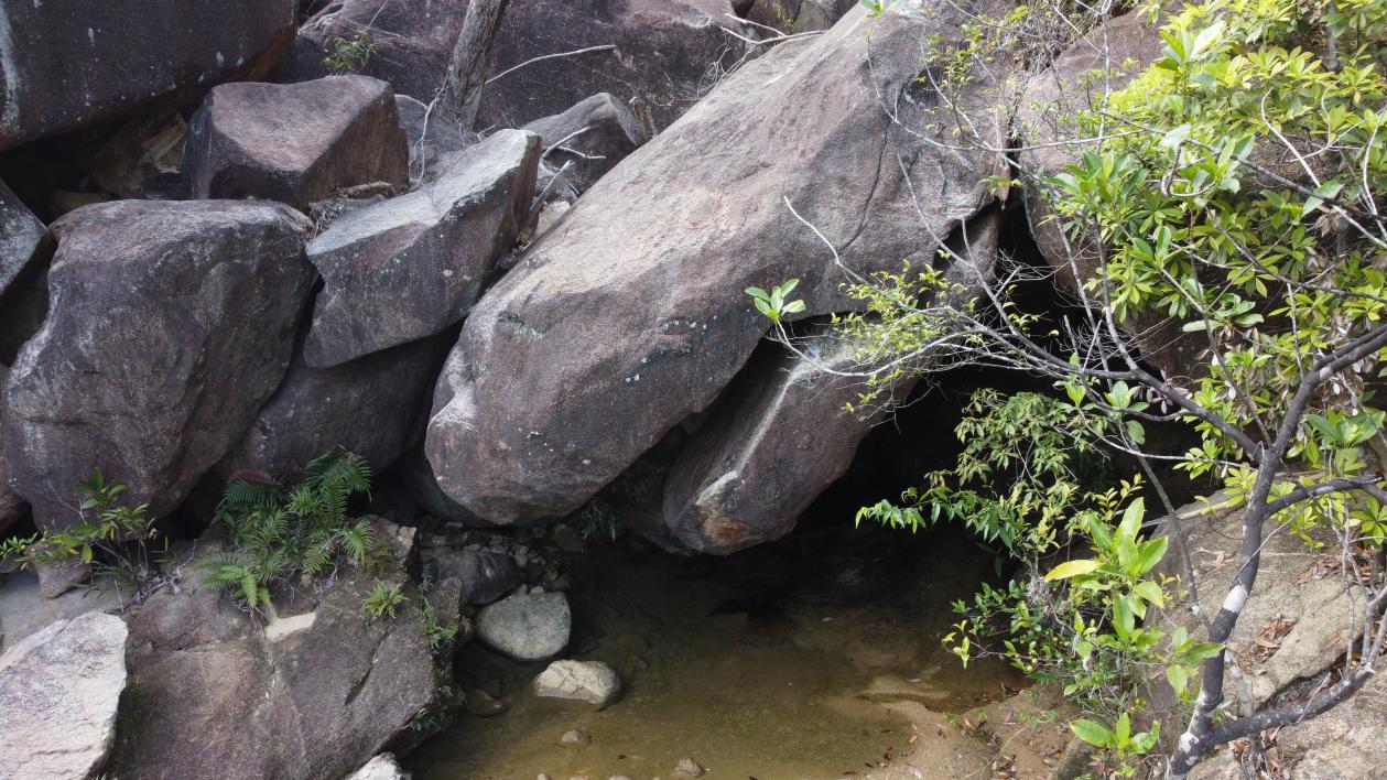 该景点位于白江湖水库源头,长约4米,形似一条巨蛇头从山涧内探出脑袋,低头饮水,蛇身藏于山涧,见首不见尾。相传当年何仙姑得道仙去后,当地缺少其庇佑,每逢雨季,自江湖水位暴涨,下游总是出现洪涝灾害,村庄田地深受其害。当地村民祈求天神保佑,天界感念村民百姓赤诚,遂派玄武下凡解决此难。玄武乃是天界水神,真身为神龟与腾蛇共生体,蛇缠龟身。玄武下凡后以龟身镇压源头,弱其水势,以蛇身饮水,减其水量,遂平此难。为保永绝此患,玄武石化分身,永守此地。