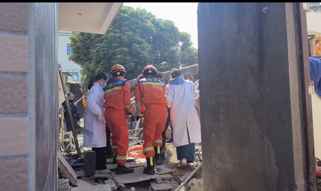1月20日12时39分,茂名市滨海新区电城镇爵山下丰村发生墙体倒塌事故,致一工人受伤被困。电城消防救援站接警后立即出动2辆消防车11名消防救援人员赶赴现场进行处置。
