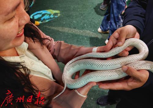 不少游客在保育员的专业指导下,第一次亲手触碰了蛇。