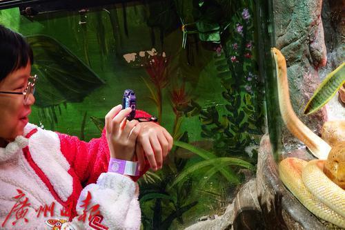 五彩斑斓的蛇类让游客们大开眼界,连连称奇。