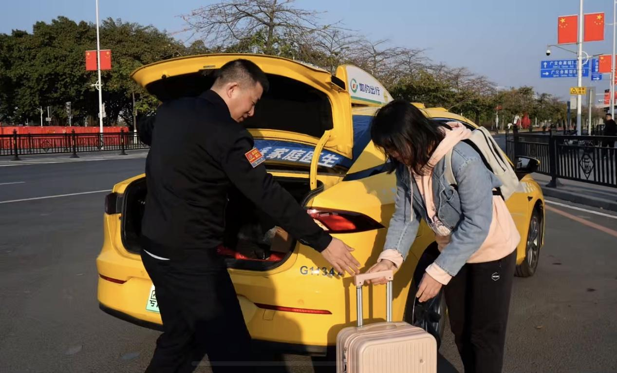 由如约出行集团组成的退役军人车队,根据客流及运力变化情况,前往广州白云站、广州火车站等重点区域疏运旅客。十余位退役军人作为的士驾驶员,把确保行车安全放在首位,为返乡乘客提供搬运行李、道路指引等服务。“这几天我已经送了不少乘客到客运站搭车了,在车上我与他们聊起了一年来的收获,看着他们脸上洋溢着回家的喜悦,我为他们感到开心。”退役军人肖国辉说。从事司机工作15年来,他每年的春节基本都在工作中度过,“尽管我也很想回家和家人团聚,但为了工作,能让乘客们平安回家,坚守岗位也是值得的。”