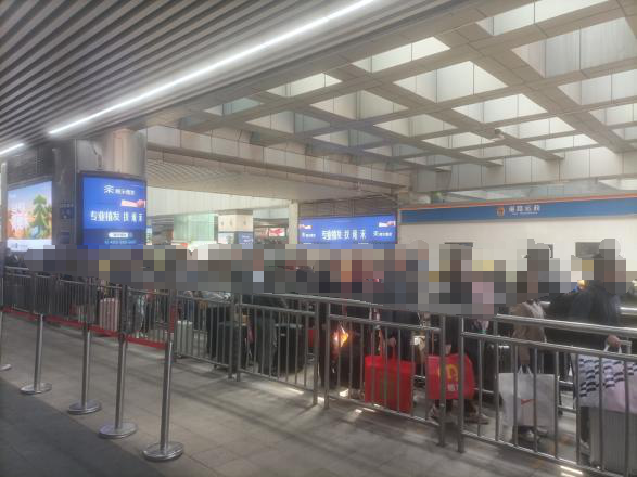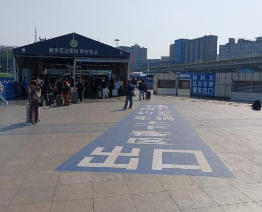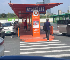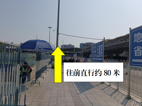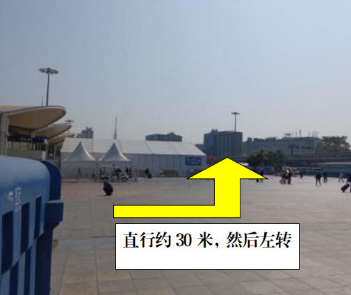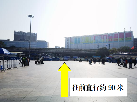 广州火车站设有1个网约车上客点,位于东广场。具体指引路线如下:出站后,沿出口方向直行约30米然至安检大棚后左转(图19),往前直行约100米,沿安检点右侧的“网约车社会车辆上下客区出口”(图20)出广场(图21),往左前方直行约100米后可见“网约车社会车辆上下客区”标识,到达“网约车社会车辆上客区”(图22)。