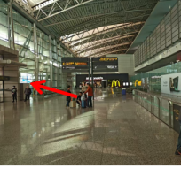 其中P2停车场上客点具体指引路线如下:从T1航站楼国内到达A口后,从出站口出站后往前直行下电梯,到达P2停车楼左转(图5),左转后继续直行约500米穿过隧道,看到指引牌后右转(图6),随后乘坐电梯至2楼(图7),(注:不上3楼),直行穿过20号门(图8),到达P2地面停车场网约车上车点。其他点位网约车车上客点可使用白云机场机场通微信小程序-交通指引-网约车乘车点指引-白云机场地图指引导航。