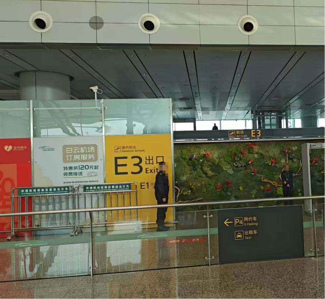 白云机场设有出租车上客点4个,其中T1航站楼设有2个:分别为A区A9号门外、B区原P5停车场内,T2航站楼设有2个分别为GTC交通中心东上客点53号门外、GTC交通中心西上客点50号门外,其中A区出租车上客点具体指引路线如下:从T1航站楼国内到达E3口(图1)后,从出站口出站后往右前方直行(图2)穿过11号门(图3),到达A区出租车上车点(图4)。其他点位出租车上客点可使用白云机场机场通微信小程序-交通指引-出租车乘车点指引-白云机场地图指引导航。
