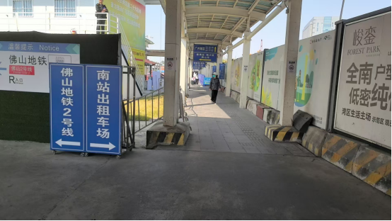 广州南站设有1个出租车上客点,具体指引路线如下:从西门出站后,沿出口方向直行(图9)约20米,到达出租车场指引牌(图10)转右,继续直行约80米出租车场道路,左侧即为出租车排队通道(图11)。