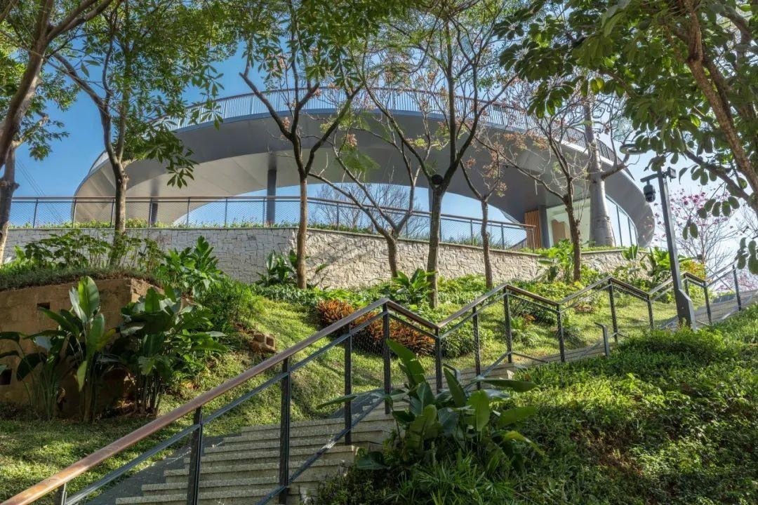 环山客厅位于红岗公园东马岭山顶区域,为红岗公园重要的城景看台,包含270°观景台、环山休闲厅、中央草坪等内容。环山客厅是红岗公园从城市走向自然的全景环廊,可拥抱城市与自然,提供极佳的罗湖天际线观景体验和休憩空间。