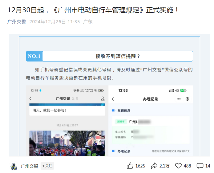 广州交警:多渠道宣传电动车新规重要内容,起到良好政策宣介作用