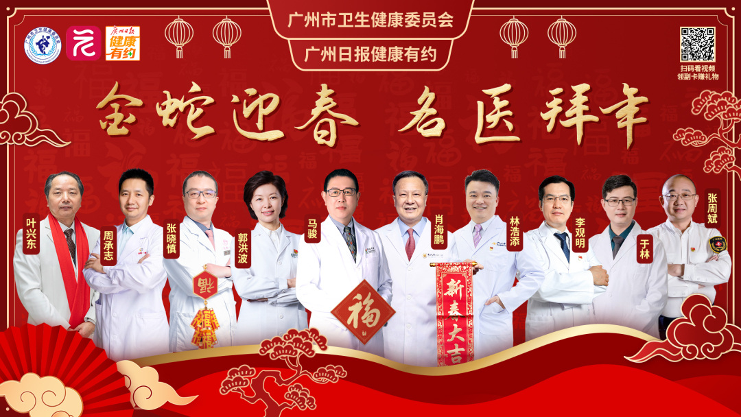 金蛇狂舞迎福运,名医拜年送健康,“名医大拜年”连续第十三年如约而至。今年,广州日报健康有约联合广州市卫生健康委员会,邀请广州各大医院院长、名医,为市民送出新春福卡和“健康利市”,祝大家欢度一个健康平安祥和的新年。