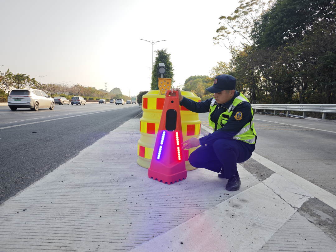 2025年春运期间,广州高速运管在辖区路段首次投入使用智能预警反光锥,为广大司乘人员的出行保驾护航。