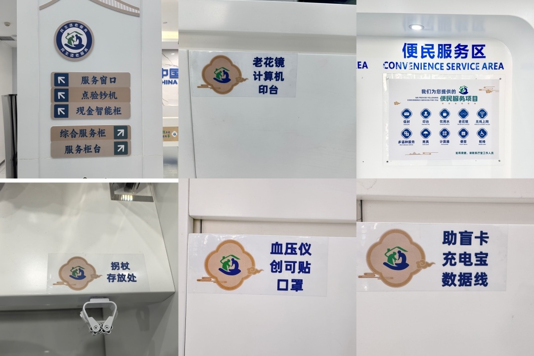 民生银行广州分行以广州越华支行为阵地,倾心打造适老示范网点,带您开启一场充满温情与关怀的服务升级之旅。民生银行持续完善厅堂服务硬件,精心布置了一系列适老化服务设施,从舒适的爱心座椅到便捷的轮椅,再到贴心的老花镜和拐杖存放处,细节尽显我行对老年客户的关爱。墙上随处可见的关怀文字与金融宣教知识,各种带有适老元素的指引贴纸,增强网点“适老”氛围感,使老年客户更具温馨服务体验。