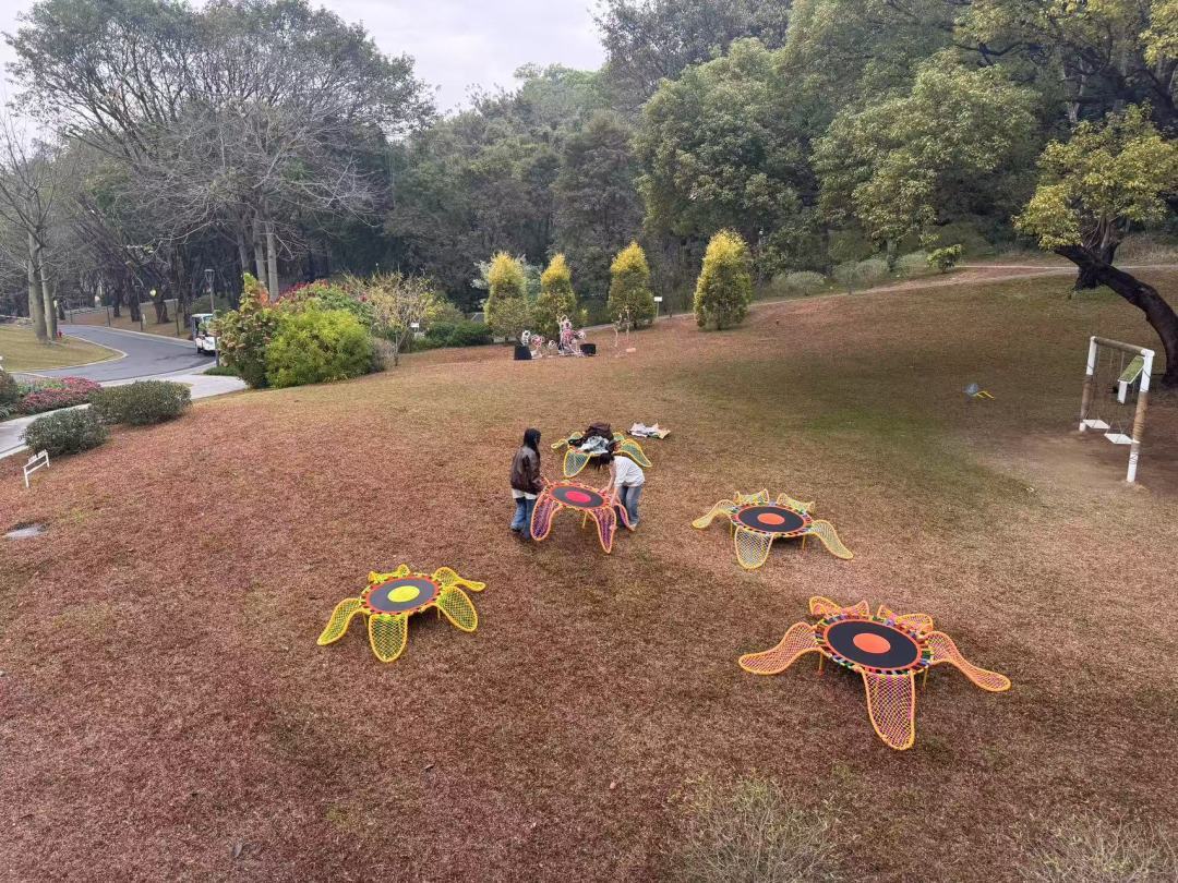 据介绍,自然艺术季汇集了国内外多位艺术家,如来自美国的Magda Sayeg和广州本土的毛线艺术家夏昕等,共同编织城市的立体色彩。其中,“木棉桥语”以广州市市花木棉为原型,收集布料厂的边角料装扮造型独特的云桥;“会呼吸的柠檬”以黄色塑胶果蔬篮制作装置上的许多隔栅“气孔”与周边环境形成共同的气场,象征着自然所具有的强大生命力和自我修复能力等等。艺术家们通过环保的纤维材料,用色彩各异的艺术语言来“包裹”植物园,探索万物与城市、社会的共生关系。