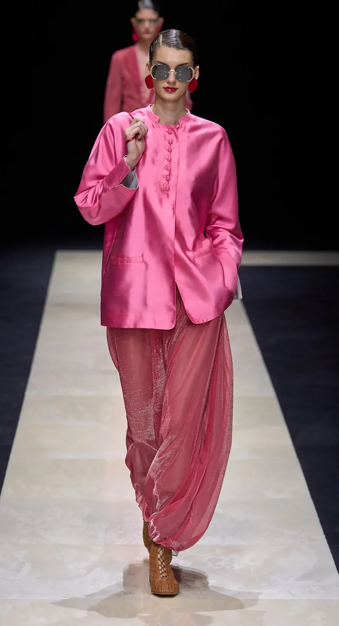 浓烈色彩的崛起,也体现在日常的流行搭配之中。记者留意到,在2025年春夏秀场流行色中,“安哥拉红”备受设计师们欢迎,而低饱和度的紫调红色和紫调棕色逐渐替代了之前的橙棕色,成为新的流行风向标。