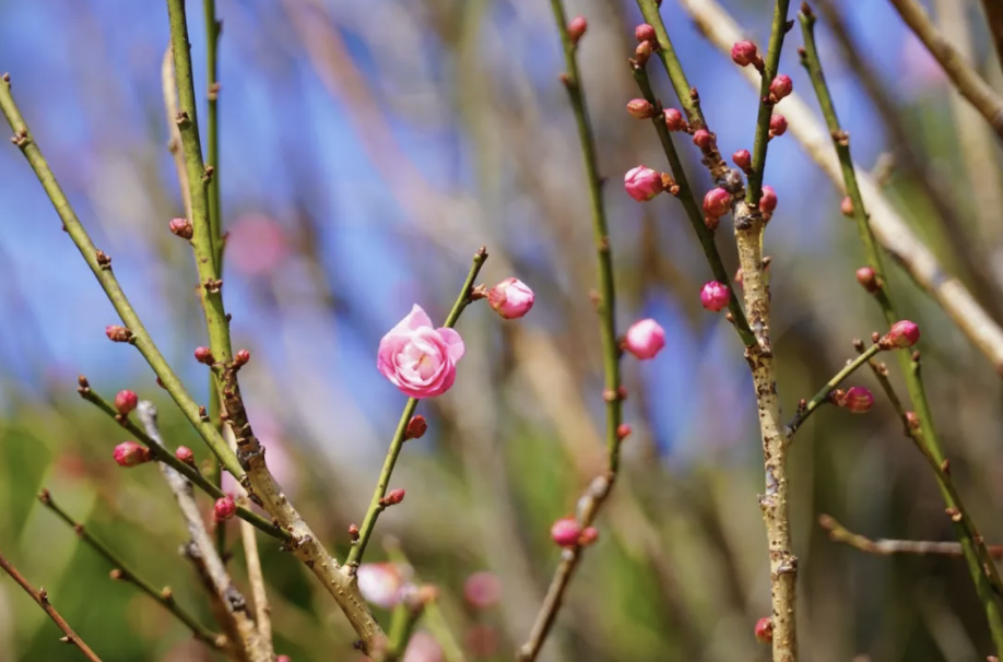 位于广州黄埔的萝岗香雪公园的白梅,已经进入了凋谢期,而园内的宫粉梅正酝酿出含苞待放的花蕾,次第绽放。远远望去好似飘着一抹抹淡淡的红云,颇为惊艳。