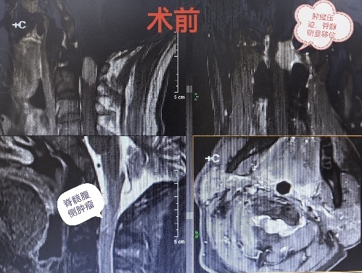 术前,医生通过高分辨率增强磁共振、颈部CTA等检查,明确肿瘤的大小、位置、血供及与周围结构的关系,制定了详细的手术计划。并邀请麻醉科、血管外科、神经内科等多学科团队参与术前会诊,评估呼吸、循环以及神经功能风险,为术中突发状况作好充分准备。