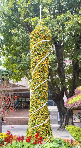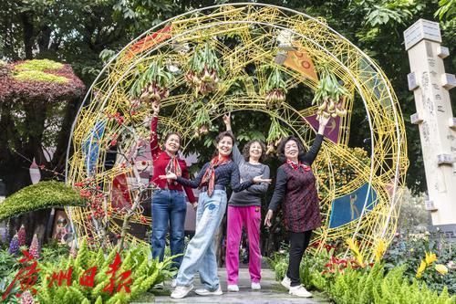 西南广场布置有以荔湾本土品种——海北桃花打造的大型桃花景组《荔韵鸿图》。