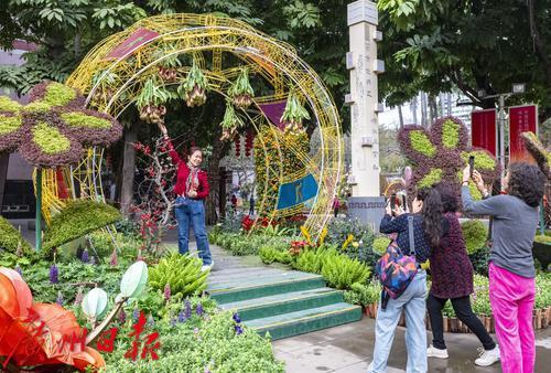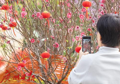 迎春花会现场春意盎然、靓姐们纷纷摆姿拍照。