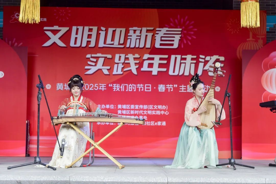 身着汉服的表演者怀抱古筝琵琶,上台奏响民乐歌曲《金蛇狂舞》,乐曲旋律昂扬、热情洋溢,渲染了春节的欢腾气氛。由黄埔区金雁乐队带来的表演《到黄埔去》《拜新年》则用歌声展示黄埔区蓬勃向上的发展活力和文化底蕴,携手汇聚文明力量,传递新春美好祝福,赢得台下一片欢呼掌声。