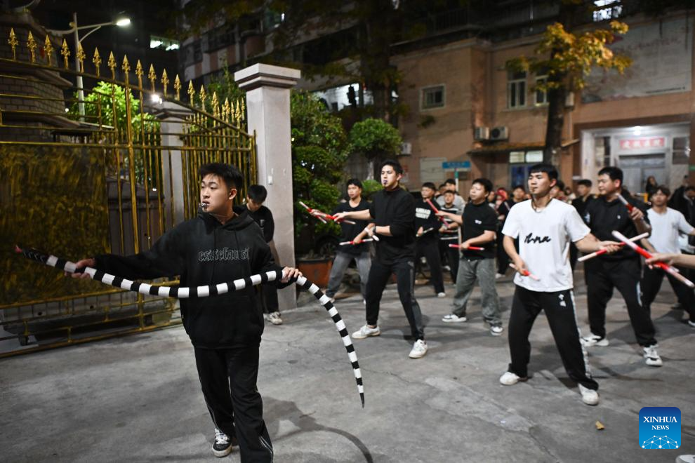 Members of an Yingge dance troupe take part in a rehearsal in Chaoyang District of Shantou City, south China's Guangdong Province, Jan. 21, 2025. (Xinhua/Deng Hua)
