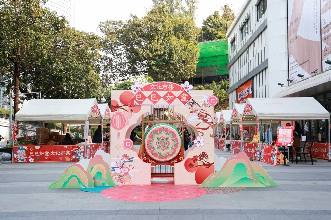 市集特装及集市设计巧妙地将新春节日的喜庆氛围与敦煌文化的独特魅力相融合,营造出一种别具一格的文化氛围,特别是精心打造的趣味互动式的鼓形装置,寓意着新年的吉祥如意,也为游客提供了一个拍照打卡、体验文化魅力的绝佳场所。同样,市集内的文化活动与摊位内容也是精彩纷呈。醒狮等民俗表演气氛热烈,新春花卉、图书文创等摊位则让游客在书香与花香中感受文化的韵味,亲手制作非遗手工艺品的手工体验区,还有亲手书写春联的挥春体验区等众多别具一格的摊位,让每一位游客都能感受到文化与生活的交融。