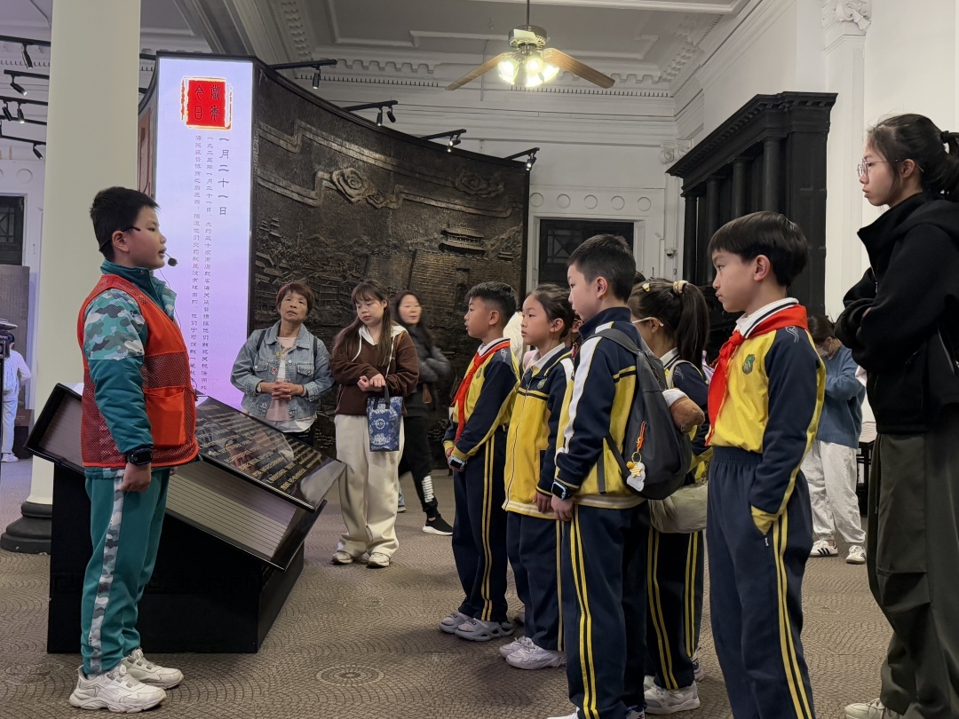 青少年志愿者在粤海关博物馆开展志愿讲解服务,为前来参观的市民、游客讲解粤海关红色历史。