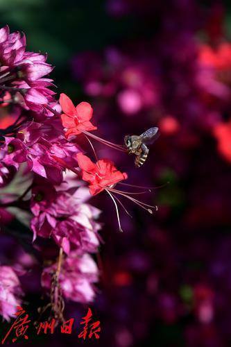 珠江公园藤本园的红萼龙吐珠开花了,一整排的红萼龙吐珠开满了紫红色的花朵,不时可见蜜蜂环绕其中,十分好看。红萼龙吐珠又叫美丽龙吐珠,其花形奇特,极具观赏性。